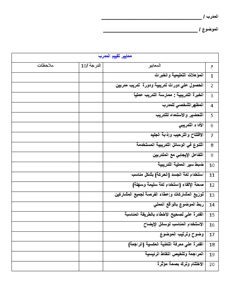 نموذج تقييم دورة تدريبية Doc