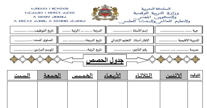 نموذج جدول الحصص فارغ word. جدول حصص فارغ للطلاب وورد. تحميل نموذج استعمال الزمن فارغ word فهو من نماذج الاستاذ الهامة التي يحتاجها بإستمرار حيث يشغل التنظيم اهمية عالية في تطوير وتحديث العملية التعليمية لانه يساهم في التركيز علي الأهدف المنشودة كما. جدول الحصص الاسبوعي doc. جدول استعمال الزمن فارغ word نموذج استعمال الزمن بصيغة word وعند استخدام تقنية استعمال الزمن فإننا نضمن الاستغلال الامثل للوقت والقدرة علي ادارته والاستفادة الحقيقة بفاعلية مما يتوفر بالمدرسة من موراد بشرية ومادية.