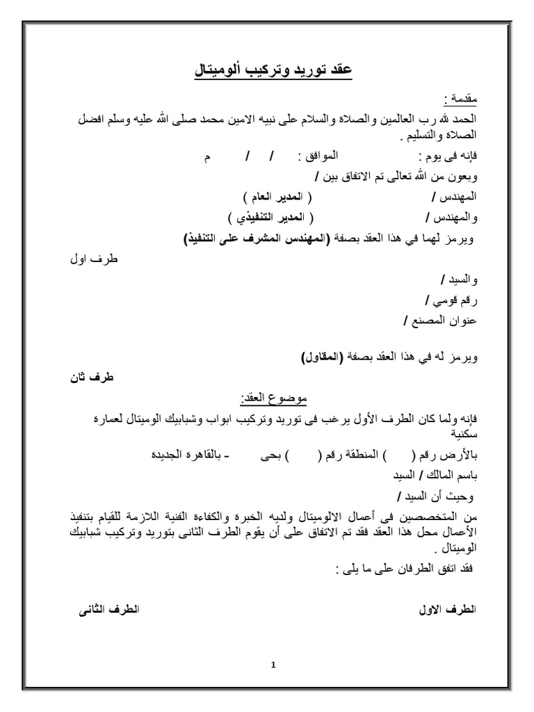 نموذج ب عقد تصنيع وتوريد. الاطلاع على العقود وتحميلها من هنا. 1 السيد. نموذج عقد مقاولة مع مهندس لعمل تصميم و.